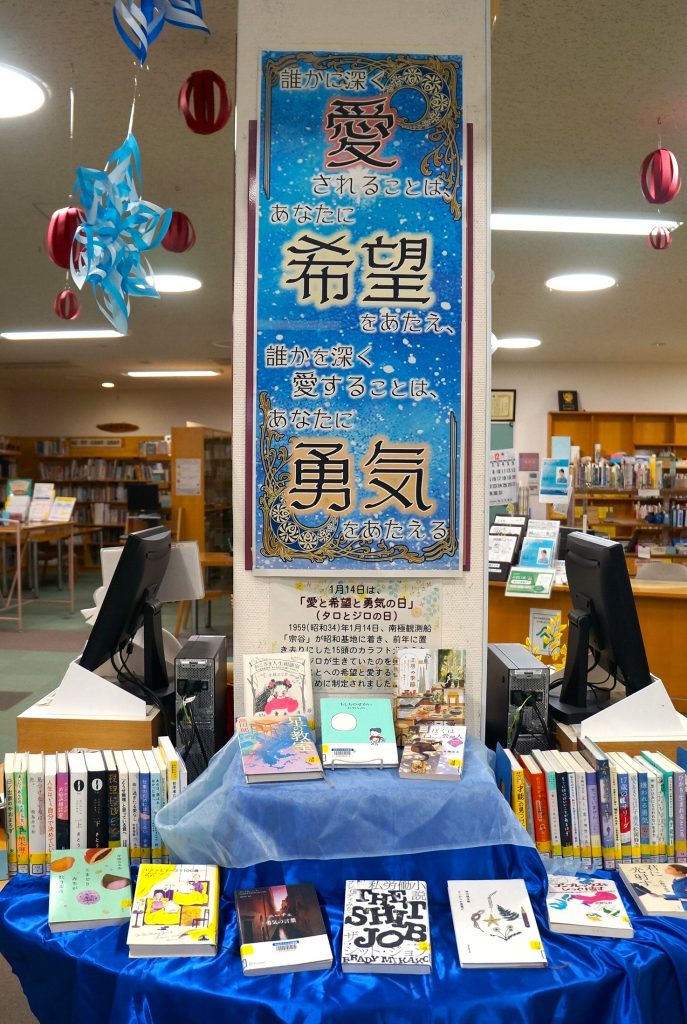 また1月14日「愛と希望と勇気の日」にちなんで、愛についての本、希望・勇気が湧いてくる本も展示しています。