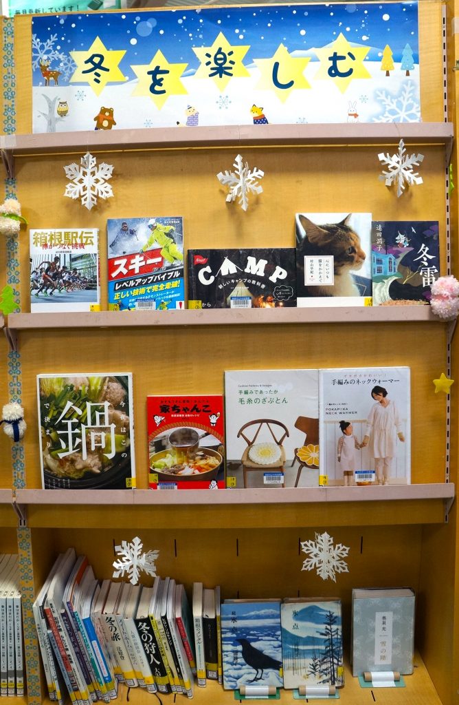 そして、「冬を楽しむ」と題して、寒くてつらい冬、でもその冬ならではの楽しみをきっと見つけられる本も展示しています。