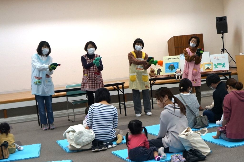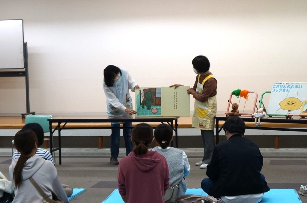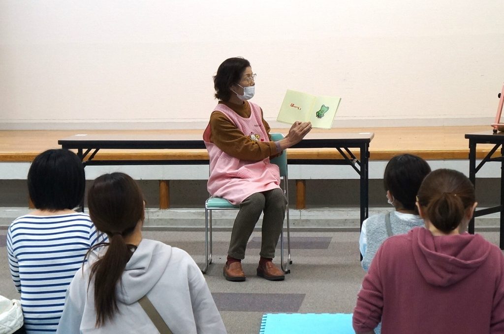 だんだん寒くなってきました。赤ちゃんと一緒におはなし会に参加してくれてありがとうございます。ぜひ、おうちでも読み聞かせしたり、手遊びをしてあげてくださいね。