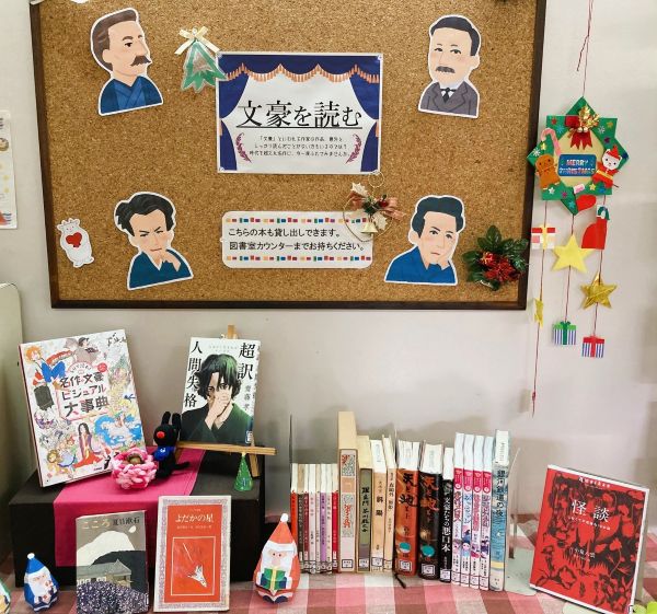 今月は「文豪を読もう」をテーマに、日本文学の礎を築いた『文豪』の作品を特集します。夏目漱石、芥川龍之介、太宰治…教科書に載っていたけど、実はしっかり読んだことがない、という人もいるのでは?鹿児島にゆかりのある椋鳩十や海音寺潮五郎の作品も展示。ぜひこの機会に読んでみてください。